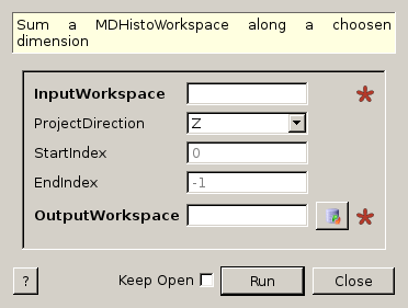 | InputWorkspace | Input | IMDHistoWorkspace | Mandatory | |