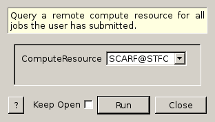 | ComputeResource | Input | string | Mandatory | The name of the remote computer to query. Allowed values: ['SCARF@STFC‘] |