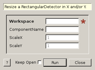 | ComponentName | Input | string | The name of the RectangularDetector to resize. | |