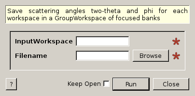 Takes a WorkspaceGroup whose children are single-spectra workspaces corresponding to focused banks, and saves their scattering angles two-theta and phi (sometimes called eta) to a 4-column format readable by MAUD.
