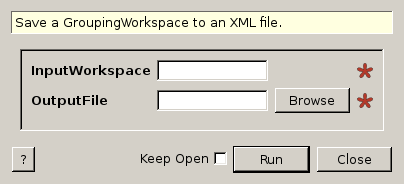 | InputWorkspace | Input | GroupingWorkspace | Mandatory | GroupingWorkspace to output to XML file (GroupingWorkspace) |