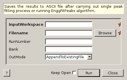 Saves the results to ASCII file after carrying out single peak fitting process or running EnggFitPeaks algorithm.