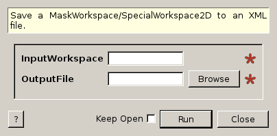 | InputWorkspace | Input | MatrixWorkspace | Mandatory | Workspace to output masking to XML file |