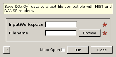 Qxy rebins a 2D workspace in units of wavelength into 2D Q. It also normalises to the solid angle of each detector pixel. The result is stored in a 2D workspace with two numeric axes, both in units of Q. SaveNISTDAT can then save the output of Qxy to an ASCII file in a form that can be read by NIST software.