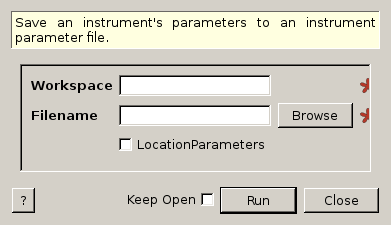 | Workspace | Input | MatrixWorkspace | Mandatory | Workspace to save the instrument parameters from. |
