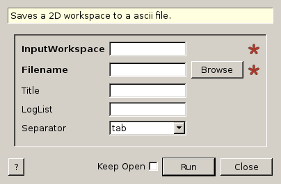 | InputWorkspace | Input | MatrixWorkspace | Mandatory | The name of the workspace containing the data you want to save. |