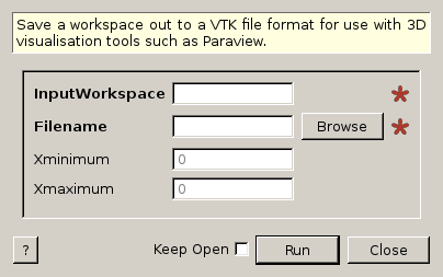 Save a workspace out to a VTK file format for use with 3D visualisation tools such as Paraview.