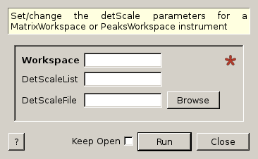 | DetScaleFile | Input | string | Optional text file with detector number and its scale on each line separated by spaces. Allowed values: [‘txt’] |
