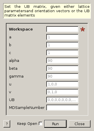 | MDSampleNumber | Input | number | Optional | For an MD workspace, the sample number to wich to attach an oriented lattice (starting from 0). No number, or negative number, means that it will copy to all samples |