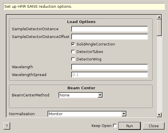 | BeamCenterMethod | Input | string | None | Method for determining the data beam center. Allowed values: [‘None’, ‘Value’, ‘DirectBeam’, ‘Scattering’] |