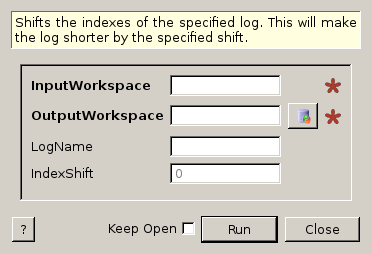 The algorithm is similar to ChangeLogTime, but instead of a defined time shift of the logs, one gets a shift in the indexes of the specified logs. This will make the log shorter by the specified shift.