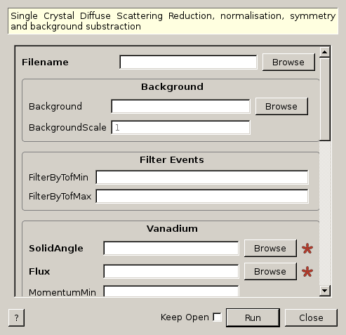 | Background | Input | string | Background run. Allowed extensions: [‘_event.nxs’, ‘.nxs.h5’, ‘.nxs’] | |