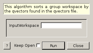 This algorithm sorts a group workspace by the qvectors found in the qvectors file. Workspaces will be tranformed if the qvectors dimension is in the bins. Used for output from LoadSassena.