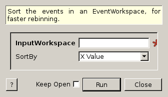 | InputWorkspace | InOut | EventWorkspace | Mandatory | EventWorkspace to be sorted. |