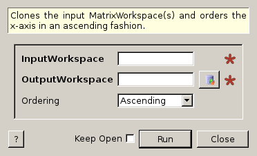 | OutputWorkspace | Output | MatrixWorkspace | Mandatory | Sorted Output Workspace |