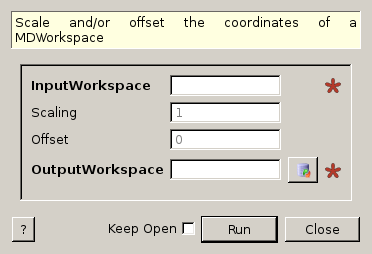 This algorithm applies a simple linear transformation to a MDWorkspace or MDHistoWorkspace. This could be used, for example, to scale the Energy dimension to different units.