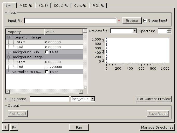 Provides an interface for the ElasticWindow algorithm, with the option of selecting the range to integrate over as well as the background range. An on-screen plot is also provided.