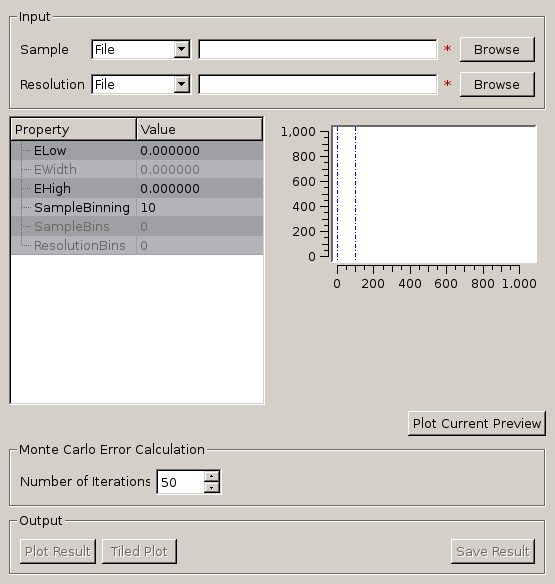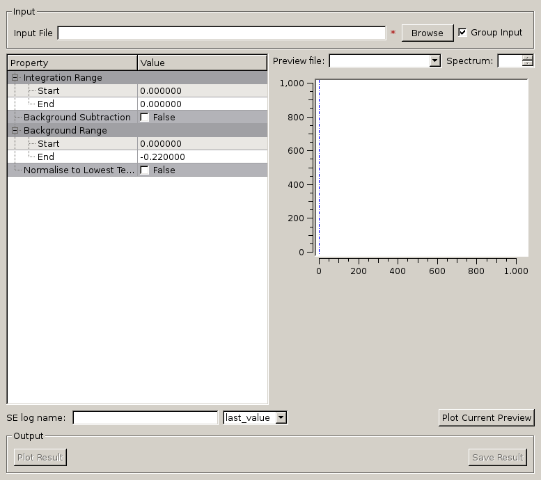 The preview plots will display the curves for the selected spectrum (‘Plot Spectrum’) of the selected data-set (when in multiple input mode, a drop-down menu will be available above the plots to select the active data-set).