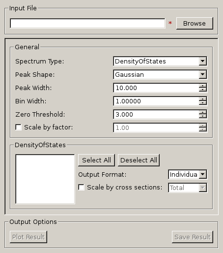 Lists all the ions in a given file, individual ions can then be selected to be included in a partial density of states.