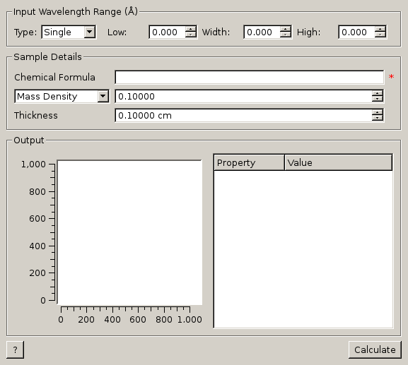 The sample transmission calculator allows the calculation of the sample transmission and scattering over a given wavelength range for a particular sample material and geometry.