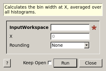 This algorithm takes the bin width at X of each histogram in InputWorkspace and calculates the average. This value is then placed in the BinWidth output property.