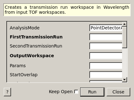 | SecondTransmissionRun | Input | MatrixWorkspace | Second transmission run workspace in TOF. | |