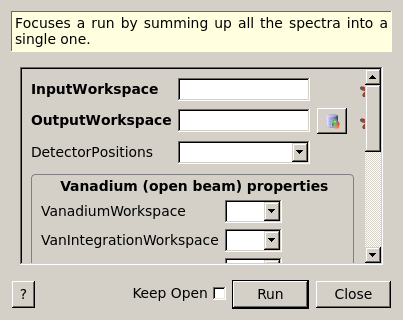 InputWorkspace Input MatrixWorkspace Mandatory Workspace with the run to focus.