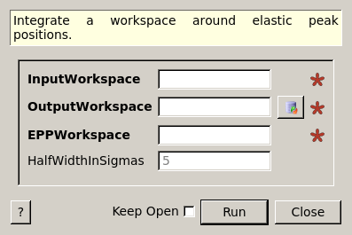 This algorithm integrates a workspace around the peak positions given in an elastic peak position (EPP) table. The integration is done using the Integration v1 algorithm. EPPWorkspace should be a table workspace in the format returned by FindEPP v2. The integration limits for workspace index