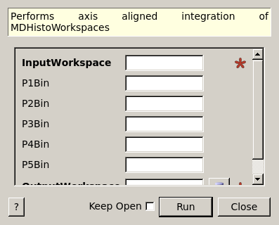 | InputWorkspace | Input | IMDHistoWorkspace | Mandatory | An input workspace. |