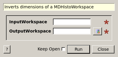 InvertMDDim inverts the dimensions of a MDHistoWorkspace. It copies the data around to match the new dimensions. This algorithm is useful when dealing with storage order issues.