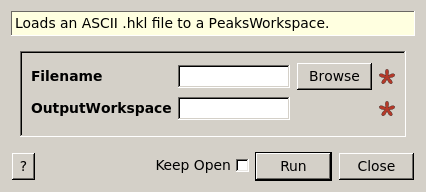 Loads an ASCII .hkl file to a PeaksWorkspace.