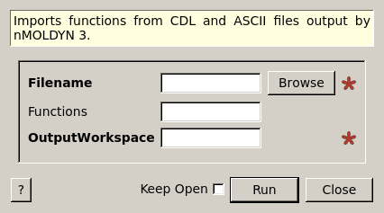 Imports functions from CDL and ASCII files output by nMOLDYN 3.