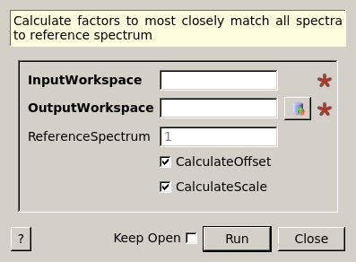 | ReferenceSpectrum | Input | number | 1 | Spectrum to match other spectra to |
