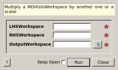 Multiply two MDHistoWorkspace‘s or a MDHistoWorkspace and a scalar.