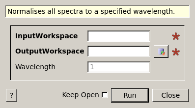 | Wavelength | Input | number | 1 | Normalizes spectra to this wavelength |