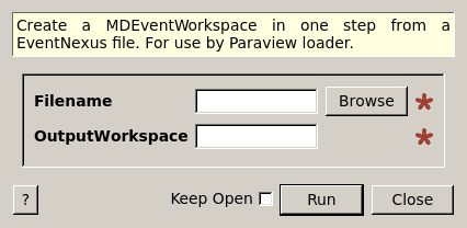 OutputWorkspace Output Workspace Mandatory Name of the output MDEventWorkspace.