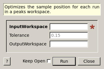 InputWorkspace Input TableWorkspace Mandatory The name of the peaks workspace that will be optimized.