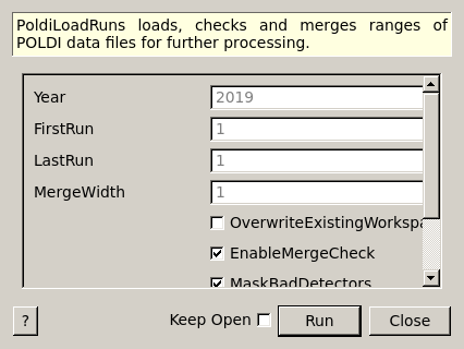 PoldiLoadRuns loads, checks and merges ranges of POLDI data files for further processing.