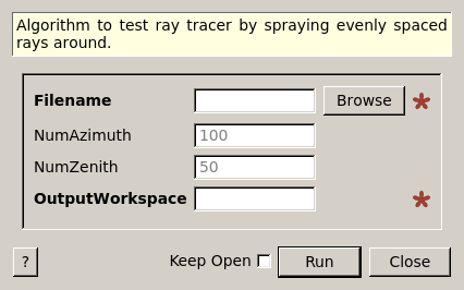 Algorithm to test ray tracer by spraying evenly spaced rays around. Only for debugging / testing.