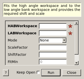 | HABWorkspace | Input | MatrixWorkspace | Mandatory | High angle bank workspace in Q |