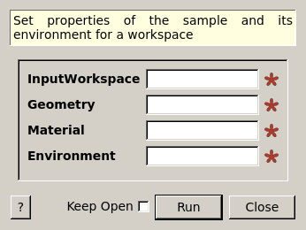 | InputWorkspace | InOut | MatrixWorkspace | Mandatory | A workspace whose sample properties will be updated |
