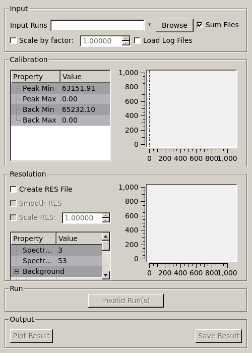 This tab gives you the ability to create Calibration and Resolution files, and is only available when the default facility is set to ISIS.