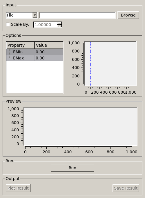 .The preview section shows what a given spectra in the input will look like after it has been symmetrised and gives an idea of how well the value of EMin fits the curve on both sides of the peak.