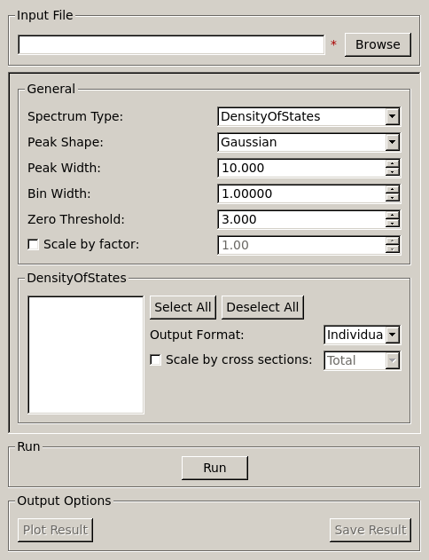 Lists all the ions in a given file, individual ions can then be selected to be included in a partial density of states.