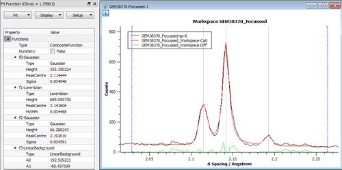Mantid provides the ability to fit overlapping peaks on a common background. Just follow the steps described earlier to add more peaks to the model. The peaks don’t have to be of the same type.