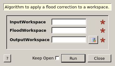 | FloodWorkspace | Input | MatrixWorkspace | Mandatory | The flood workspace. |