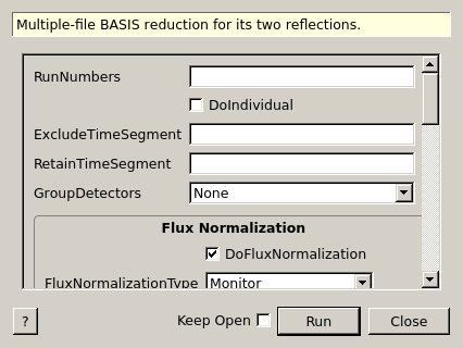 | FluxNormalizationType | Input | string | Monitor | Flux Normalization Type. Allowed values: [‘Monitor’, ‘Proton Charge’, ‘Duration’] |