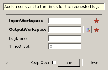 | TimeOffset | Input | number | 0 | Number of seconds (a float) to add to the time of each log value. Required. |