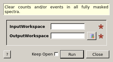 Clear counts (or events, if applicable) on all spectra that are fully masked. A spectrum is fully masked if all of its associated detectors are masked, e.g., from a call to MaskInstrument.