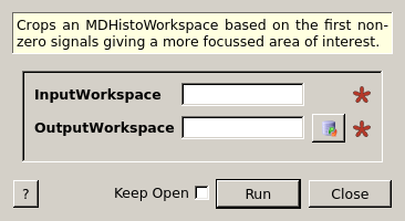 Used to crop an n-dimensional MDHistoWorkspace to the first non-zero signal values found in all dimensions.